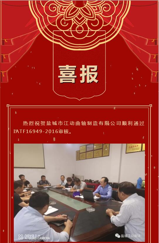 ?热烈祝贺盐城市江动曲轴制造有限公司顺利通过IATF16949-2016审核